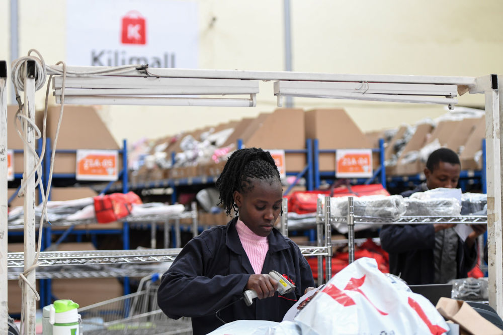 2023年7月28日,在肯尼亞姆洛隆戈,湖南長沙非拓信息技術有限公司旗下電商平臺Kilimall的員工在倉庫內(nèi)分揀貨物。新華社記者 李亞輝 攝