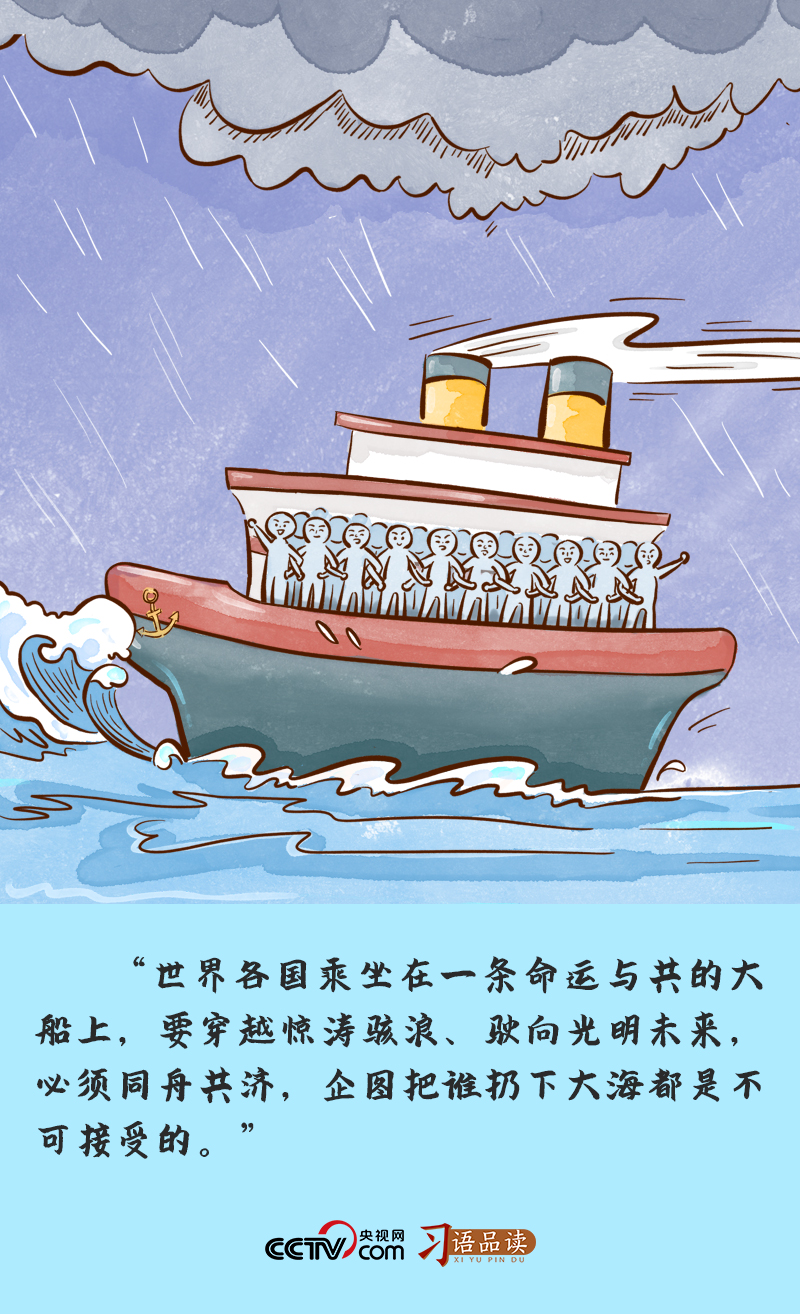 2022年1月17日,在2022年世界經(jīng)濟論壇視頻會議上,習主席深刻闡釋“小船”和“大船”的關系:“各國不是乘坐在190多條小船上,而是乘坐在一條命運與共的大船上。小船經(jīng)不起風浪,巨艦才能頂住驚濤駭浪?!?/p>
