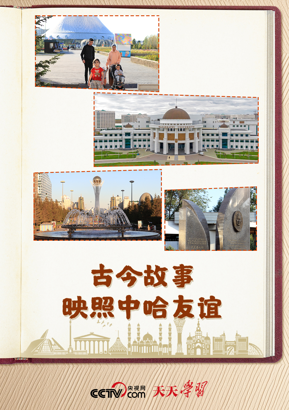 2013年9月,習(xí)近平主席在哈薩克斯坦納扎爾巴耶夫大學(xué)發(fā)表重要演講。正是在這次演講中,習(xí)主席首次提出了建設(shè)“絲綢之路經(jīng)濟帶”倡議,按下“一帶一路”啟動鍵。其間,習(xí)主席還講述了中國著名音樂家冼星海、哈薩克斯坦小伙魯斯蘭等多個中哈友誼故事。