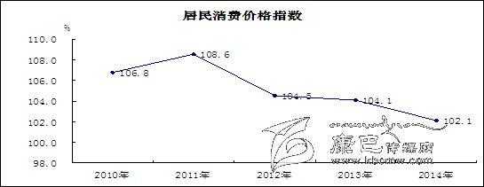 物價(jià)運(yùn)行基本穩(wěn)定,漲幅高于全國(guó)全省。2014年12月CPI同比上漲1.7%,全年消費(fèi)價(jià)格總水平比上年上漲2.1%,漲幅為7年來新低,比全國(guó)高0.1個(gè)百分點(diǎn)、比全省高0.5個(gè)百分點(diǎn)。