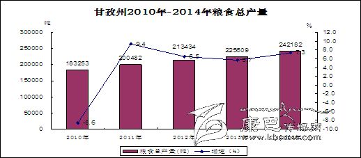 農(nóng)作物播種面積進(jìn)一步擴(kuò)大,全年農(nóng)作物總播種面積達(dá)到84203公頃,較上年增加1405公頃,增長(zhǎng)1.7%,其中,糧食、油菜籽、蔬菜的播面分別為71275公頃,5493公頃、6675公頃。 農(nóng)作物單產(chǎn)得到提高,全年糧食單產(chǎn)達(dá)到226公斤/畝,增幅達(dá)6.4%;油菜籽單產(chǎn)達(dá)149公斤/畝,增長(zhǎng)1.5%;蔬菜由于受干旱和種植結(jié)構(gòu)變動(dòng)的影響, 單產(chǎn)略有下降,為2090公斤/畝,減0.9%。 受播種面積擴(kuò)大和單產(chǎn)提高的拉動(dòng),糧食、油菜籽和蔬菜全面增產(chǎn),其中:糧食產(chǎn)量達(dá)242182噸,較去年增加16573噸,增長(zhǎng)7.3%;油菜籽產(chǎn)量再創(chuàng)新高達(dá)到12617噸,較去年增加1052噸,增長(zhǎng)9.1%;蔬菜產(chǎn)量達(dá)到209291噸,較去年增加10430噸,增長(zhǎng)5.2%。