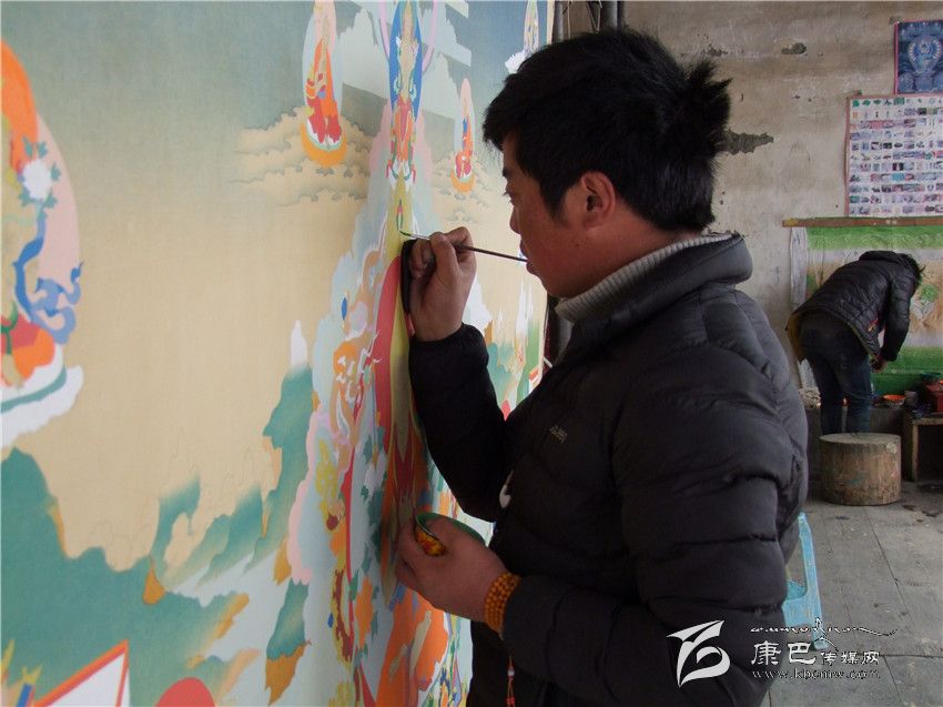 3月18日,在德格縣達馬鄉(xiāng)一間不起眼的藏族民居里,10多個青年農(nóng)民正在師傅澤批的精心指點下,學習唐卡繪畫技術。