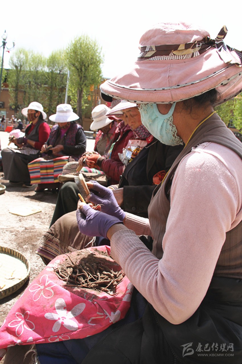 理塘縣藏族婦女為蟲(chóng)草收購(gòu)商刷蟲(chóng)草
