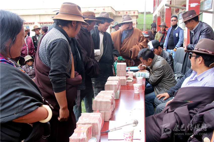 “今天的分紅項(xiàng)目共有三項(xiàng),一是技能人員分紅156800元,二是勞務(wù)輸出隊(duì)分紅532213元,三是社員分紅1437100,合計(jì)分紅金額2126113元……”隨著合作社理事長尼瑪向社員代表公布合作社成立至今的經(jīng)營管理情況、財(cái)務(wù)運(yùn)行情況等,分紅大會(huì)正式開始。