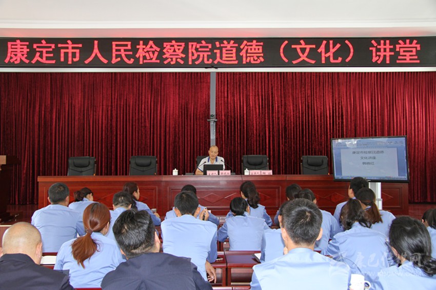 為推進(jìn)檢察文化與公民道德建設(shè),深入學(xué)習(xí)九龍縣人民檢察院原黨組書(shū)記、檢察長(zhǎng)蘇知斌同志的先進(jìn)事跡,扎實(shí)開(kāi)展政法機(jī)關(guān)“講政治、提能力、鑄忠魂”主題教育活動(dòng),8月2日,康定市人民檢察院舉辦了道德(文化)講堂活動(dòng)。我州學(xué)者韓曉紅圍繞康巴文化和社會(huì)責(zé)任等,作了題為“文化與社會(huì)安全”的專(zhuān)題講座。 (胡海佳 攝影報(bào)道)