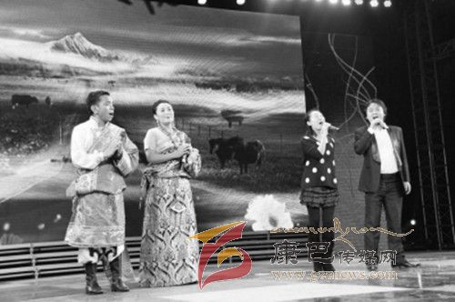 雙流節(jié)目中最有亮點(diǎn)的是川劇《人間好》和《水龍吟·黃龍溪街市》。和藏戲一樣,川劇是中國(guó)戲曲寶庫(kù)中的一顆光彩照人的明珠,唐代便有“蜀戲冠天下”的說(shuō)法。今天,川劇《人間好》與《巴塘藏戲》先后登場(chǎng),展現(xiàn)了雙巴兩地對(duì)非遺文化的傳承精神?!度碎g好》用高腔、胡琴、昆腔、燈戲、彈戲五種聲腔,表達(dá)了人們對(duì)美好生活的歌頌與向往。意味雋永的唱腔,引人入勝的表演,幽默風(fēng)趣的唱詞,充滿鮮明的地方色彩和濃郁的生活氣息。最令觀眾感興趣的是,具有象征意義又妙趣橫生的川劇臉譜與粗獷而富有民族特色的藏戲臉譜交相輝映,不經(jīng)意間反映出了本次活動(dòng)的主題:感恩、互助、團(tuán)結(jié)?!端堃?middot;黃龍溪街市》節(jié)目以川劇特技變臉將觀眾引入場(chǎng)景,把舞臺(tái)寫(xiě)意與生活再現(xiàn)結(jié)合,著意淡化了純粹歌舞性表演和拼盤(pán)式集合,歌舞、戲曲、技藝等各種川派文化意象配合現(xiàn)代聲音和光電技術(shù),抽象而集中地展示了黃龍溪的茶文化、酒文化、卜筮文化,美人、美酒、美茶、美詩(shī)、美景,流溢出濃濃的川味,演員和觀眾在歷史的長(zhǎng)河中穿梭往來(lái)。