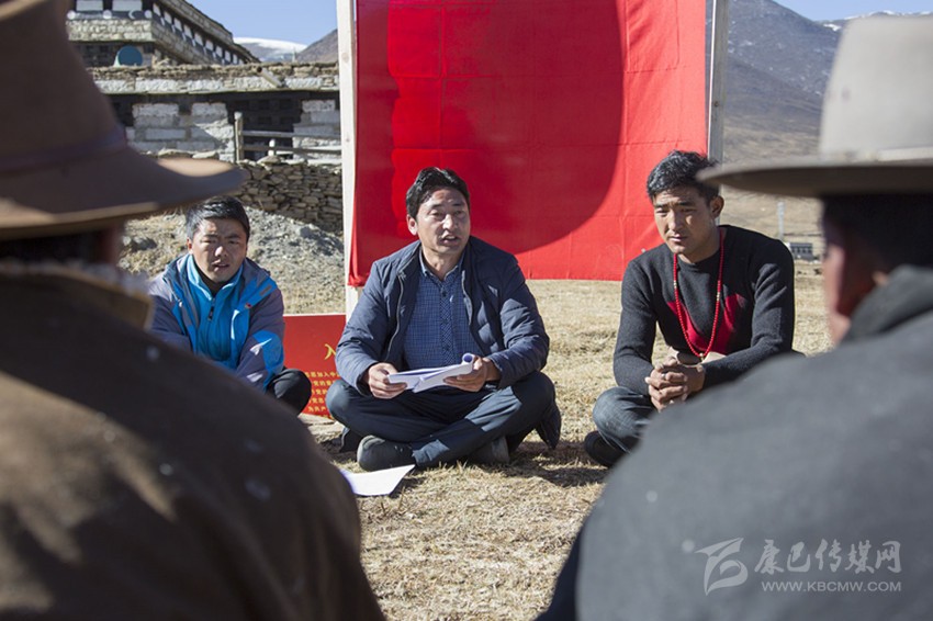 色拉鄉(xiāng)黨委書記布初用藏漢雙語主持會(huì)議并宣傳黨的十九大精神。