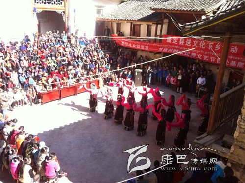 12月2日,康定縣捧塔鄉(xiāng)捧塔寺內(nèi)人頭攢動,熱鬧非凡,由康定縣旅游文化局組織的送文化下鄉(xiāng)惠民演出吸引了周邊的眾多群眾前來觀看。 演出在州歌舞團(tuán)演員歡快的舞蹈中拉開帷幕。一曲曲耳熟能詳?shù)母枨?、一支支熱情洋溢的舞蹈為農(nóng)牧民群眾送上了一份文化厚禮。演出結(jié)束,意猶未盡的捧塔村民說:“今天一大早我就等在這里,農(nóng)村的文化生活簡單枯燥,好久沒有看到這么精彩豐富的文藝節(jié)目了,它不但豐富了我們的文化生活,還宣傳了黨的惠民政策,這樣的方式比傳統(tǒng)的開會宣傳更能讓大家知曉、熟記各項(xiàng)富農(nóng)惠民政策,也更受大家歡迎,希望這樣的活動以后能多多舉辦。”圖為演出現(xiàn)場。(李瑤 攝影報(bào)道)