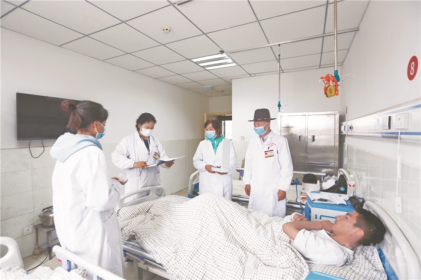 羅布(右一)帶領(lǐng)醫(yī)生查房。