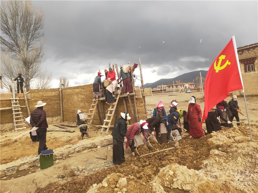 本網(wǎng)訊 3月28日,在理塘縣濯桑鄉(xiāng)康呷村,村民們正熱火朝天地修繕改造土墻房,為推進本地文化特色的民居游作準(zhǔn)備。