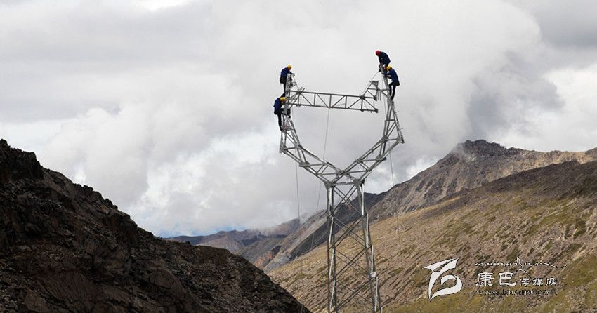 電力員工在波密鄉(xiāng)境內(nèi)海拔5100米施工地域安裝鐵塔。