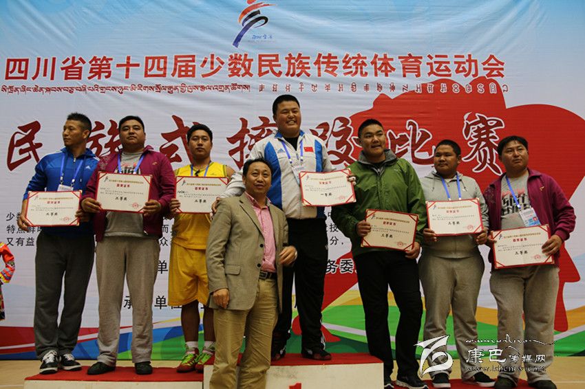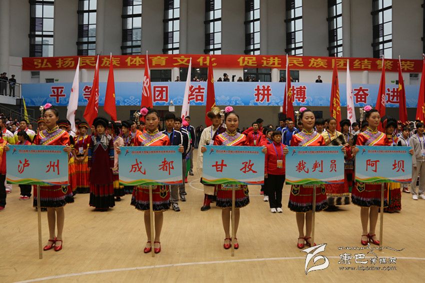 2014年11月4日—9日,四川省第十四屆少數(shù)民族傳統(tǒng)體育運(yùn)動(dòng)會(huì)在宜賓市隆重舉行。在此次民運(yùn)會(huì)上,由138人組成的甘孜州代表團(tuán)代表112萬父老鄉(xiāng)親參加了本屆民運(yùn)會(huì)射弩、民族式摔跤(格、北嘎、且里西、絆跤)、蹴球、押加、珍珠球、高腳競(jìng)速、板鞋競(jìng)速、陀螺、苗族手毽等9個(gè)競(jìng)賽項(xiàng)目和競(jìng)技類、技巧類、綜合類3個(gè)表演項(xiàng)目的比賽。
