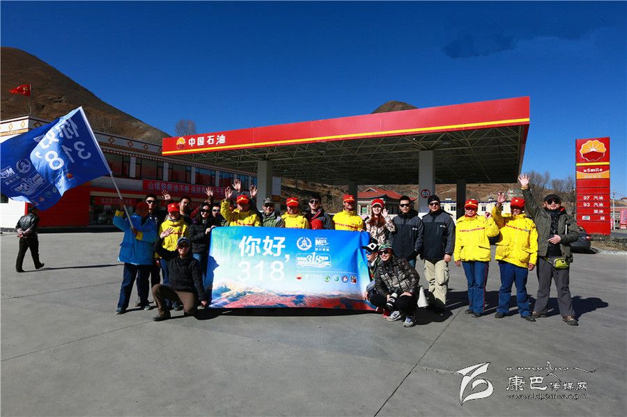新都橋加油站全體員工與新華網(wǎng)318川藏線(xiàn)60周年全媒體行團(tuán)隊(duì)合影。