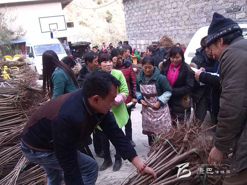 康定市羊廠村民踴躍領(lǐng)取大櫻桃樹苗。
