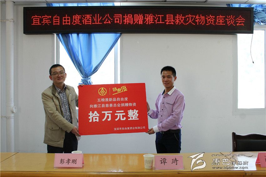 會(huì)上,彭孝剛代表宜賓自由度酒業(yè)有限公司向雅江縣慈善總會(huì)捐贈(zèng)了包括救災(zāi)帳篷、棉被等價(jià)值10萬(wàn)元的物資。