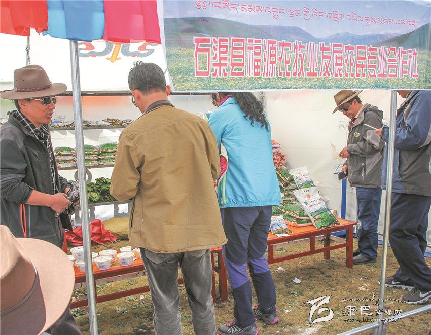 8月3日是石渠縣帳篷節(jié)的最后一天,清晨的陽(yáng)光透過(guò)炊煙傾灑在草原千余頂帳篷上,40多歲的藏族漢子嘎戎從生活區(qū)的帳篷里出來(lái),走向不遠(yuǎn)的太陽(yáng)部落帳篷商貿(mào)城集市。那里安扎著400多頂帳篷,有商戶370家,周邊還有50多個(gè)流動(dòng)的小商販。嘎戎所在的石渠縣福源農(nóng)牧業(yè)發(fā)展農(nóng)民合作社就是其中的一家參展商。從帳篷節(jié)開(kāi)始,嘎戎就和其它5個(gè)人輪流值守這個(gè)他們倍加珍惜的展位,那是他們合作社自今年4月份成立至今第一次在如此重大的場(chǎng)合中露面,經(jīng)過(guò)這次檢驗(yàn),他們對(duì)自己的產(chǎn)品更加有信心。駐真達(dá)村第一書(shū)記祝修濤告訴記者,短短一個(gè)星期,合作社展售的糌粑、人參果、奶渣近2000斤,銷售額達(dá)4萬(wàn)多元。這個(gè)農(nóng)民專業(yè)合作社以扶貧為己任,從建設(shè)種植基地到水磨房加工投入了200多萬(wàn)元,全村50戶村民參與,合作社將原料統(tǒng)一發(fā)給村民加工,再統(tǒng)一收起來(lái),統(tǒng)一包裝銷售。祝修濤說(shuō),社里的產(chǎn)品剛開(kāi)始只是在當(dāng)?shù)爻鍪郏m然投入大但產(chǎn)量不敢做大,這次有這個(gè)平臺(tái)得到了市場(chǎng)的認(rèn)可,他們對(duì)合作社的發(fā)展充滿了信心。祝修濤,作為該村的第一書(shū)記,他要帶領(lǐng)著這個(gè)合作社好好規(guī)劃、大干一場(chǎng)。