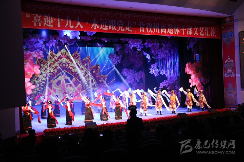 本網(wǎng)訊(記者 宋志勇 文/圖)9月29日,由州委、州政府主辦,州委組織部、州委老干部局、州文體廣新局承辦的“喜迎十九大、永遠(yuǎn)跟黨走”全州離退休干部文藝匯演在康定劇場(chǎng)舉行,旨在謳歌黨在藏區(qū)的豐功偉績(jī),頌揚(yáng)甘孜兒女今天的幸福生活。州級(jí)退休老領(lǐng)導(dǎo)胡克禮、吞珠、寧紹武、便巴傾批、李明璽、何濤、李其福、郭昌平以及州委老干部工作領(lǐng)導(dǎo)小組成員單位領(lǐng)導(dǎo)和相關(guān)部門領(lǐng)導(dǎo)出席并參加活動(dòng)。州委常委、宣傳部長(zhǎng)相洛出席活動(dòng)并致辭,省委老干部局副局長(zhǎng)史可,州人大常委會(huì)副主任白蘇英、州政府副州長(zhǎng)鄭天強(qiáng)、州政協(xié)副主席陳洪暴和特邀嘉賓涼山州委組織部副部長(zhǎng)、老干局局長(zhǎng)楊國敏出席并觀看演出。