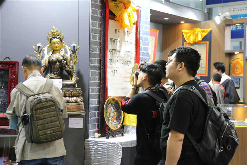 在深圳會(huì)展中心8號(hào)館,我州展區(qū)以傳統(tǒng)的民族文化吸引了眾多游客的駐足。190平方米的展區(qū)內(nèi),百余件展品涵蓋唐卡、藏文書法、手工藝、文創(chuàng)產(chǎn)品等非遺精品佳作,在花色青銅《綠度母佛像》品牌引領(lǐng)下,突出展示了我州豐富多彩的民族文化資源與非物質(zhì)文化遺產(chǎn)。
