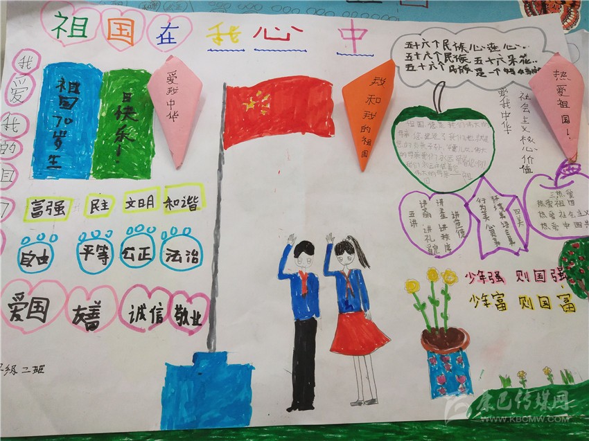 活動在該校三至六年級學(xué)生中開展,老師為學(xué)生提供創(chuàng)作所需材料,讓學(xué)生自由想象發(fā)揮,把自己心中對祖國的熱愛躍然紙上。各班精心組織,不到兩個(gè)小時(shí)的時(shí)間,一幅幅主題鮮明、內(nèi)容豐富、色彩明快的手抄報(bào)誕生了,孩子們的作品充滿了對祖國深深的愛與衷心的祝福。何俊鑫 文/圖