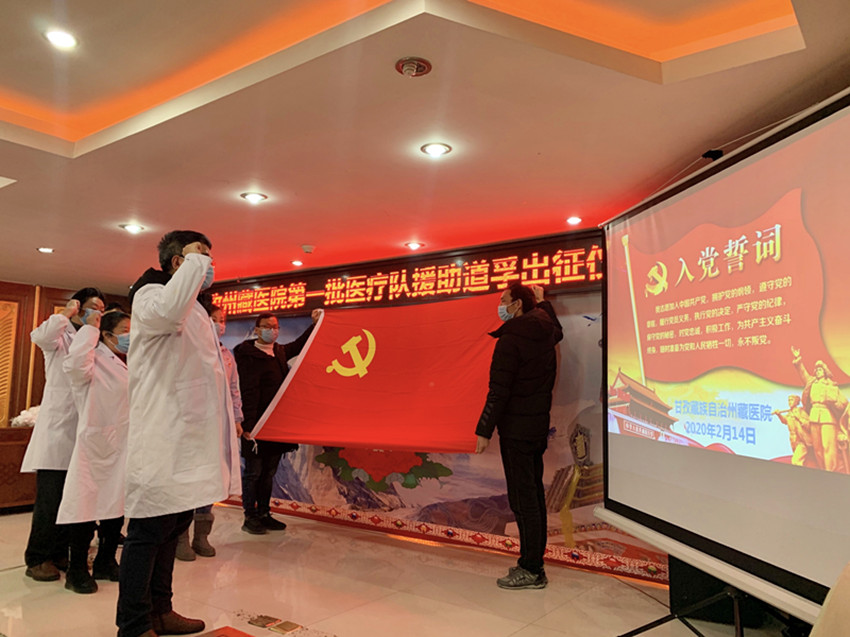 事實證明,州藏醫(yī)院的擔心和提前準備完全是必要的。2020年2月,道孚縣爆發(fā)疫情,全縣進入管控狀態(tài)??粗约旱募亦l(xiāng)發(fā)生疫情,州藏醫(yī)院的醫(yī)護人員心急如焚。盡管對這未知的病毒心中沒底,但沒人退縮,全院上下皆積極請戰(zhàn)。在醫(yī)院黨委再次申請下,州抗疫指揮部研究同意了藏醫(yī)院參與抗疫工作,2月14日,在時任副院長、主任藏醫(yī)師江吉村的帶領(lǐng)下,藏醫(yī)診療隊奔赴道孚。這是新中國成立以來,藏醫(yī)首次參加的大型抗疫阻擊戰(zhàn)。