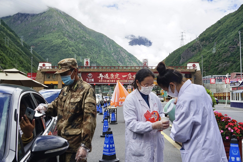 地震又遇疫情。大量救援隊進入災區(qū),加大了當?shù)匾咔榉揽氐膲毫Α闇p輕當?shù)胤酪邏毫Γ?月6日,州藏醫(yī)院再次抽派8名醫(yī)務(wù)人員組成兩支核酸采樣隊,奔赴瀘定縣得妥鎮(zhèn)火線支援疫情防控工作。核酸采樣隊到達目的地后,在應(yīng)急指揮部的安排下,迅速投入到了緊張有序的采樣工作中。截止撤離時,共為當?shù)亻_展了1萬余人次的核酸采樣。