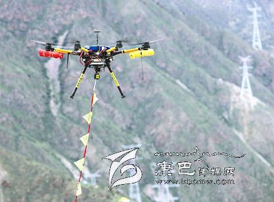 為應(yīng)對復(fù)雜地形和氣候環(huán)境,四川送變電公司使用了由四川電力應(yīng)急中心自主組裝的高科技“法寶”——八旋翼飛行器。