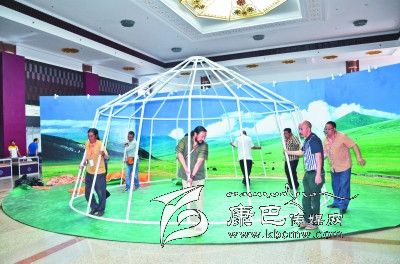 拾階而上,從序廳開始每走一步都會(huì)心生蓮花,首先映入眼簾的是兩堵巨大的LED顯示屏,屏幕上滾動(dòng)播放著旅游宣傳片,清澈的藍(lán)天、綠綠的草地、農(nóng)牧民們淳樸的笑意,眼睛開始跟著心靈旅行,而心的深處卻像長出了一對(duì)靈巧的翅膀,振振欲飛。西廳的照片墻,除去未經(jīng)PS過的高原美景外,還展示了建州64年來,甘孜兒女向上奮發(fā)的新面貌。由西廳出來至正廳,在跨進(jìn)門口的一剎那,便會(huì)被那頂蒙古包似的虎皮帳篷所吸住魂魄,流連、駐足、照相,它被人們傲慢地搭建在整個(gè)展廳最顯眼的位置,仿佛在箱底收藏了那么多年終于揚(yáng)眉吐氣。北京人是有眼福的,很多在甘孜州本土生活了幾十年的人都是第一次親眼見到這頂帳篷,所有的人都為之驚嘆,并好奇這頂帳篷背后的故事。而關(guān)于這頂虎皮帳篷的記載并不多,這頂帳篷原是屬于理塘縣“雍若本”人的,而“雍若本”人舊時(shí)為理塘毛埡的土司階層,由于他們的祖先是從青海游牧過來的部落,到現(xiàn)在都保留有流動(dòng)帳篷寺廟的風(fēng)俗,據(jù)專家們推測(cè)如此奢華威嚴(yán)的一頂帳篷可能是流動(dòng)的官府衙門。