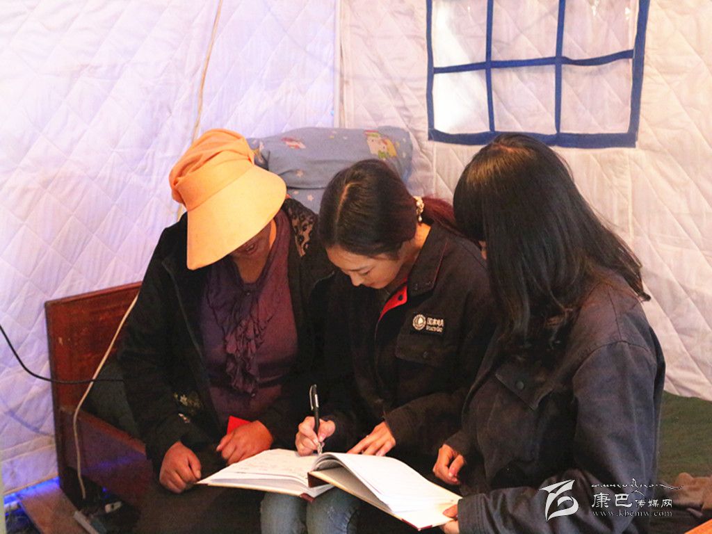 走進(jìn)救災(zāi)帳篷,澤仁汪清的姐姐古讓看到丹珍拉姆他們的到來,拿出繳費冊如數(shù)繳了電費,感激地對拉姆說:“你們上門服務(wù),讓我們節(jié)約了路費和時間,真是太謝謝你們了!”