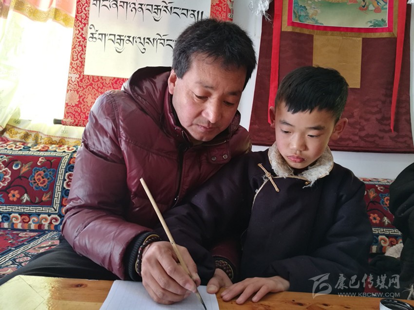 本網(wǎng)訊(余應(yīng)瓊 /圖)使用竹筆的時候拇指和食指握筆,要手腕用力,還要注意坐姿哦?!?/span>211日,元宵節(jié)這天,巴松鄧珠照例來到甘孜縣文化館,免費為喜歡藏文書法的青少年授課,對小一點的孩子,還手把手地教起來。