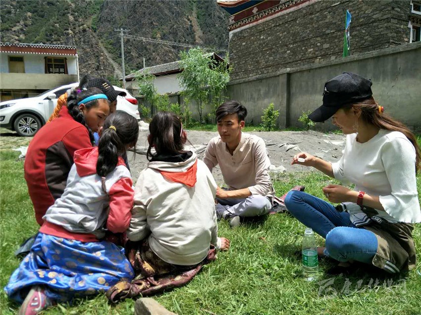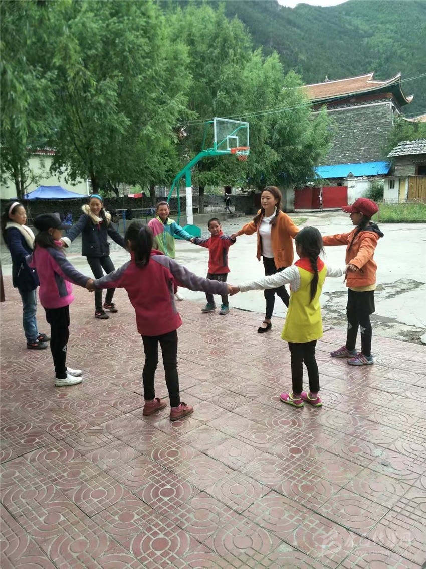 扎西拉姆帶領同學們做游戲。