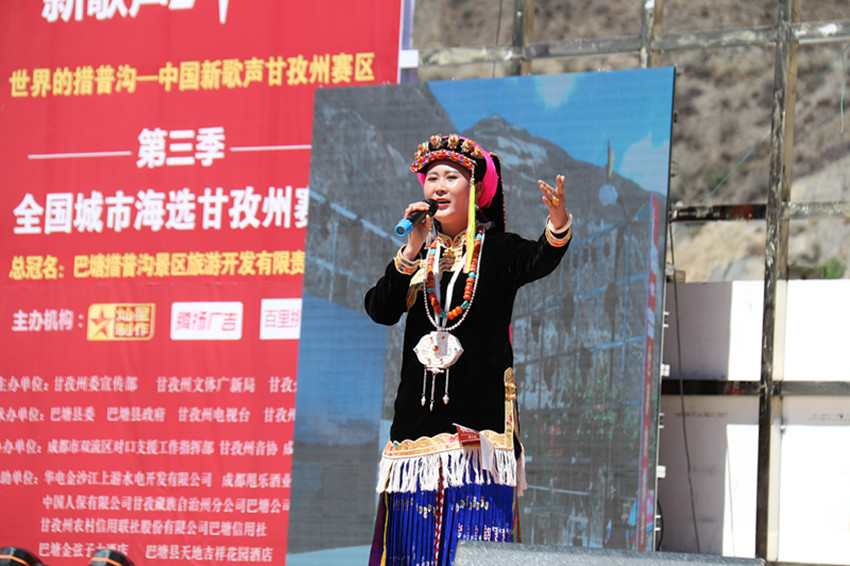 時的激烈比拼后,大賽選出9名選手晉級四川省級決賽并評比出十強選手。來自丹巴的選手擁西,以一首《格桑花》榮獲第三季《中國新歌聲》全國城市海選甘孜賽區(qū)冠軍。她出色的樂感、宛如天籟般的音色,民族韻味十足的臺風,將歌曲演繹得淋漓盡致,贏得觀眾的陣陣掌聲和喝彩聲。在比賽中,理塘選手土登桑珠在萬人見證下表白求婚,九龍縣藏彝組合近乎完美的和聲,“網(wǎng)絡人氣王”四郎讓登震撼飚高音,都給觀眾留下了深刻印象,受到眾評委的一致稱贊。