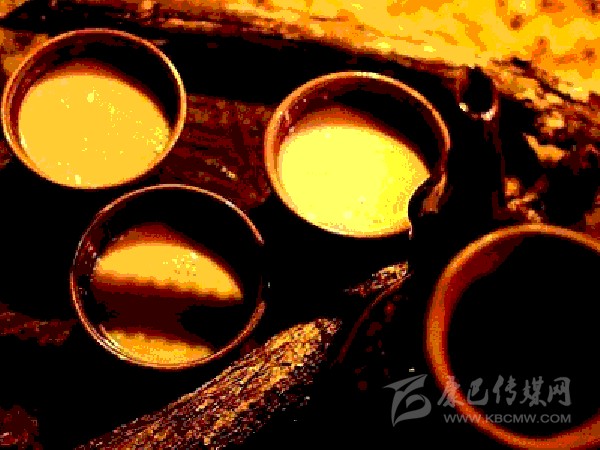 酥油是從牛、羊奶中提煉出來的。以前,牧民提煉酥油的方法比較特殊。先將奶計(jì)加熱,然后倒入一種叫做"雪董"的大木桶里(4尺、直徑1尺左右),用力上下抽打,來回?cái)?shù)百次,攪得油水分離,上面浮起一層湖黃色的脂肪質(zhì),把它舀起來,灌進(jìn)皮口袋,冷卻了便成酥油。制作酥油茶時(shí)。先將茶葉或磚茶用水久熬成濃什,再把茶水倒入"董莫"(酥油茶桶),再放入酥油和食鹽,用力將"甲洛"上下來回抽幾十下,攪得油茶交融,然后倒進(jìn)鍋里加熱,便成酥油茶了。