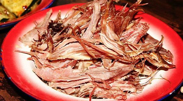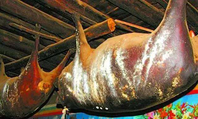 康南則用繩將豬勒死,讓血存于體內,然后用草點火去毛,于肛門處割一孔,取出內臟,用干草或麥子等塞入豬腹內,用針縫合,縫口處用灶灰摻水攪合成糊密封,掛在室內,待其發(fā)酵,產生臭味時食用,稱“臭豬肉”。