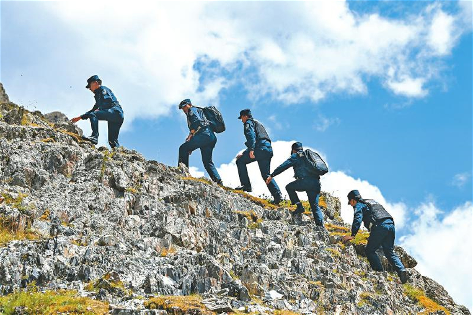 “甲日村有幾戶牧民是前幾天剛遷徙過來的,我們?nèi)ソo他們進行一次法治宣講,也去了解下他們有沒有辦理身份證、戶口的需求。他們住在河那邊,出行也不方便。”巡山任務(wù)結(jié)束后,趁著大家吃干糧休整的時間,登真扎巴對大家說。